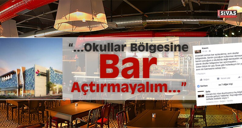 Bu kapsamda facebook ortamından tepki mesajları paylaşan Sivaslı vatandaşlar, "Sivas’taki AVM’ye bar açılacakmış. Avm okullar bölgesinde. Benim çocuğum kullanmaz demeyelim, benim çocuğum o okullarda değil demeyelim. Veliler olarak okullar bölgesine bar açtırmayalım...