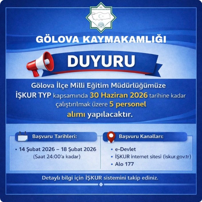 Gölova, İŞKUR, TYP personel alımı, İlçe Milli Eğitim, iş ilanı, personel alımı duyurusu, e-Devlet başvuru, geçici istihdam