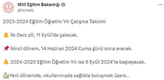2024-2025 Eğitim Öğretim Yılı ise 9 Eylül 2024’te başlayacak.