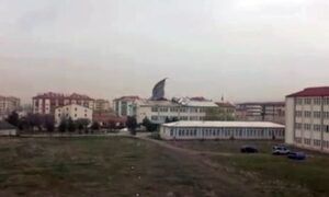 Fırtınanın kaldırdığı çatı uçarak yere düştü. Olayda her hangi bir can kaybı ve yaralanma oluşmadı. Çatının uçma anı cep telefonu ile görüntülendi.iha