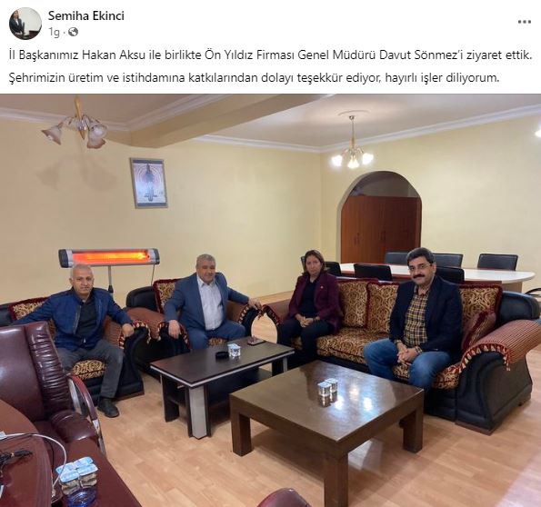 Geçtiğimiz günlerde yüzlerce kişiyi işten çıkaran Önyıldız Tekstili ziyaret eden AK Parti Sivas Milletvekili Semiha Ekinci ise sosyal medya hesabından "İl Başkanımız Hakan Aksu ile birlikte Ön Yıldız Firması Genel Müdürü Davut Sönmez’i ziyaret ettik. Şehrimizin üretim ve istihdamına katkılarından dolayı teşekkür ediyor, hayırlı işler diliyorum." paylaşımını yaptı...
