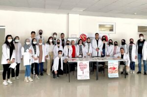 Tıp Fakültesi öğrencileri bilgilendirme faaliyetinin ardından Hastane Başhekimi Prof. Dr. Ömer Tamer Doğan’ı ziyaret ederek kendilerine vermiş olduğu destekten dolayı teşekkür etti.