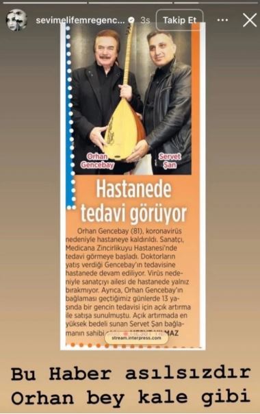 Sevim Emre paylaşımında, Kontrol amaçlı hastaneye bile gidemeyecek miyiz? Orhan abiniz kale gibi maşallah. Allah onu korusun.” ifadelerini kullandı.