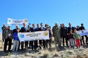 Gürün ilçesinde Orman Haftası dolayısıyla düzenlenen fidan dikme etkinliğinde bin 600 fidan toprakla buluştu.
