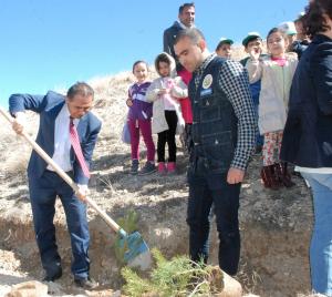 Fidan dikim programına Belediye Başkanı Nami Çiftçi, Sivas İl Afet ve Acil Durum Müdürü Nazif Ekinci, kurum amirleri ve çok sayıda öğrenci katıldı.(AA)