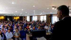 Yekbaş’ın konuşmasının ardından Ekonometri Bölümü Araştırma Görevlisi Yağız Can Bayhan sunum gerçekleştirdi. Bayhan, öğrencilere 7+1, Erasmus ve Farabi değişim programları hakkında bilgi verdi. iha