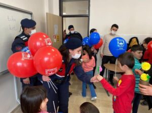 Sivas İl Jandarma ekipleri otizimli çocukların hastalığına dikkat çekmek için ziyarette bulundu.