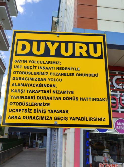 Sivas'ta hastane karşısındaki otobüs durağı, yol çalışmaları tamamlanmasına ve trafik lambaları yerleştirilmesine rağmen hala aktif hale getirilmedi. Şubat 2023'te geçici olarak işlevsiz hale getirilen durağın, yol çalışmalarının bitmesine rağmen yeniden hizmete açılmaması, vatandaşları zor durumda bırakıyor.
