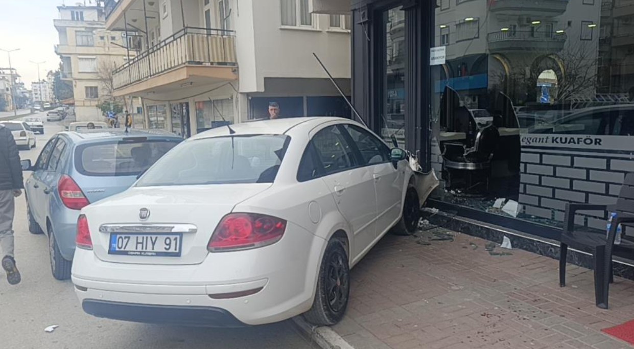 Antalya’da kaza, Mehmet Akif Ersoy Caddesi üzerinde meydana geldi. Edinilen bilgilere göre, Remzi Güven Caddesi istikametine seyir halinde olan Osman K. idaresindeki 07 HIY 91 plakalı otomobil, 3572. Sokak kesişimine geldiği sırada kontrolden çıktı. Sürücünün direksiyon hâkimiyetini kaybetmesi sonucu otomobil, yol kenarında bulunan bir erkek kuaförü dükkânının vitrinine çarparak içeri girdi.