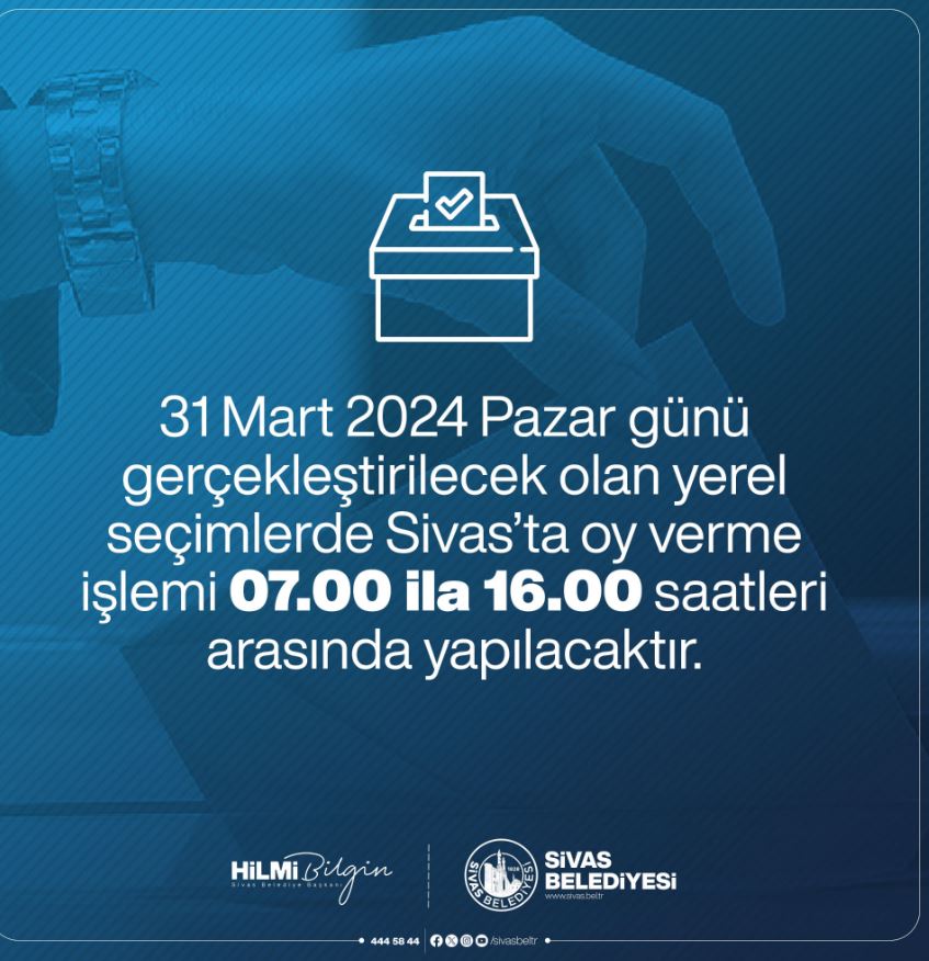 Sivas Belediye Başkanlığı sosyal medya hesabından oy kullanma saatlerini açıkladı.