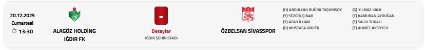 Mücadele, 20 Aralık 2025 Cumartesi günü saat 13.30’da Iğdır Şehir Stadyumu’nda oynanacak.