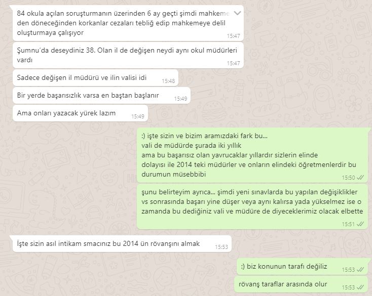 Son olarak Eğitim Bir Sen İl Temsilcisi Halil İbrahim Temiz ise yine yayınladığımız bir haber sonrası "Ben paylaşım yapmadım diyorum adam beni “sosyal medya cehaleti” ile suçluyor. Arşivi tarıyorum. Benim böyle bir paylaşımım yok. İl müdürünün paylaşımına beni etiketlediği için benim sayfamda da göründüğünü bilmiyor. Yazık cehalet kötü bir şey. Adınız büyük de olsa……” diyerek bizi cehaletle suçlamıştı.