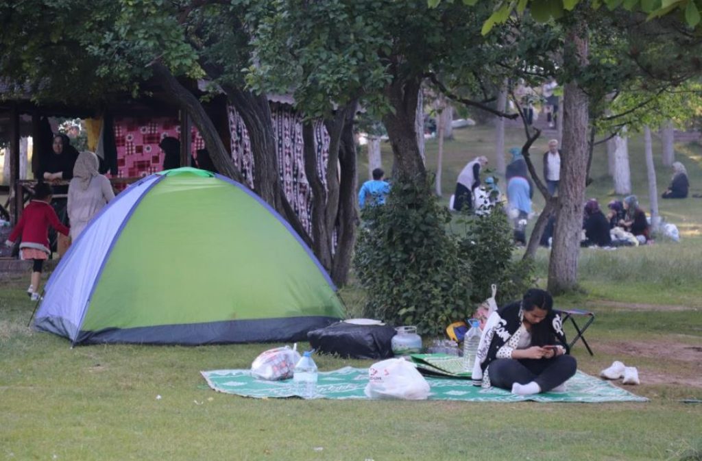 Sivas'ta hava sıcaklıklarının mevsim normallerinin üzerinde seyretmesi nedeniyle vatandaşlar beton binalardan kaçıp mesire alanlarına akın etti.