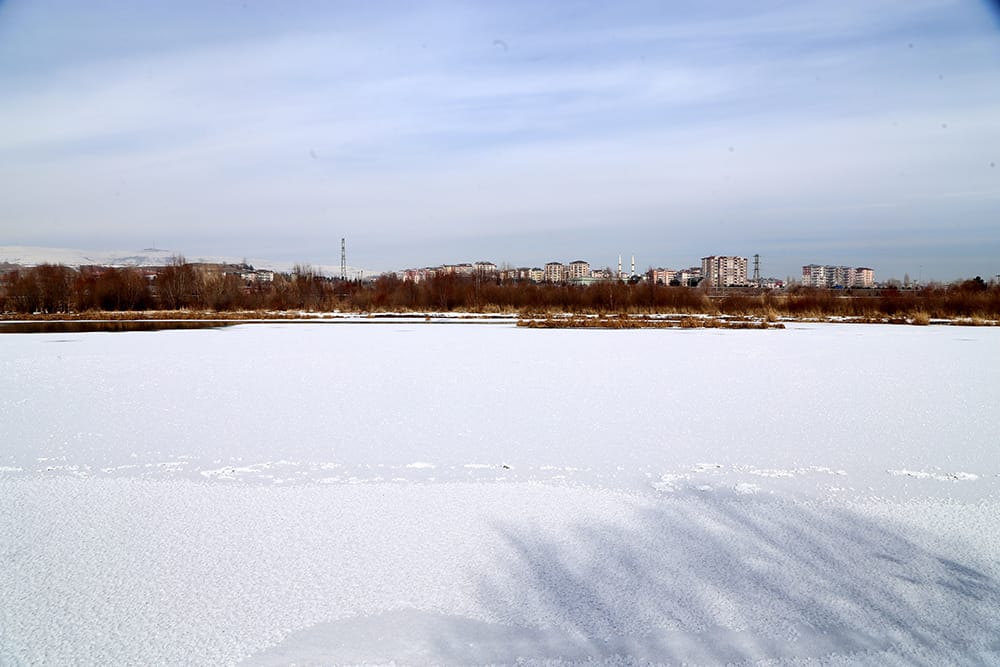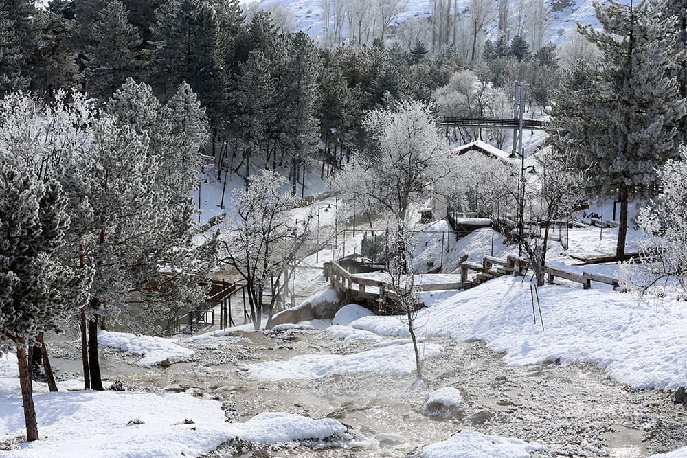 Sıcaklığın gece sıfırın altında 15, gündüz saatlerinde 10 dereceye kadar düştüğü kentte, soğuk havanın etkisiyle oluşan kırağı da ağaçlarda güzel görüntüler ortaya çıkardı. (AA)