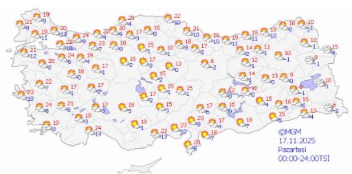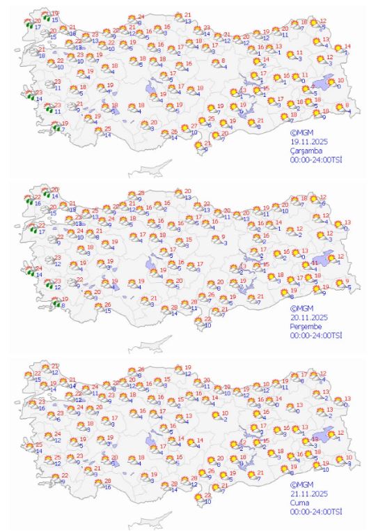 Yurdun büyük bölümünde ise parçalı ve az bulutlu bir hava bekleniyor.