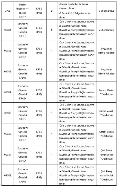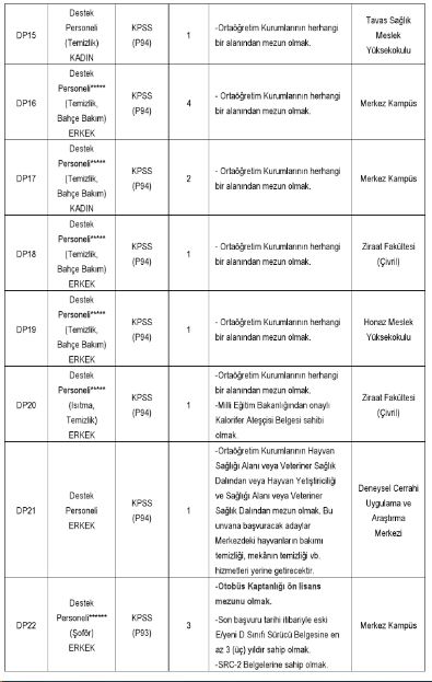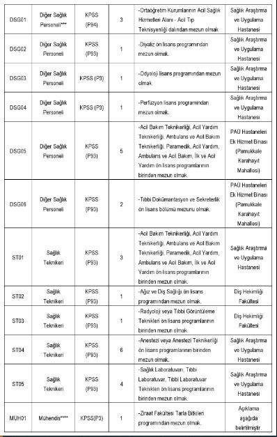 Üniversitemizin çeşitli Birimlerine 657 sayılı Devlet Memurları Kanunu'nun 4' üncü maddesinin B fıkrasına göre istihdam edilmek ve giderleri özel bütçeden karşılanmak üzere 06.06.1978 tarihli ve 7/15754 sayılı Bakanlar Kurulu Kararına ekli "Sözleşmeli Personel Çalıştırılmasına İlişkin Esasların" Ek 2'nci maddesinin (b) fıkrasına göre aşağıda belirtilen unvanlarda 2020 yılı KPSS (B) grubu puan sıralamaları esas alınmak suretiyle (En az KPSS puanı 65 ve üzeri olanlar başvuru yapabilecektir.) yazılı ve sözlü sınav yapılmaksızın (Eczacı unvanı hariç) sözleşmeli personel alınacaktır.