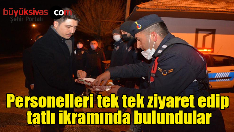 Sivas’ın Altınyayla ilçesinde Kaymakam Ahmed Tayyib Kahraman, Belediye Başkanı Sinan Akbulut, İlçe Jandarma Komutanı Fatih Yıldız ve İlçe Emniyet Amiri Gökhan Yıldırım yılbaşı gecesinde görevde bulunan kamu personellerini ziyaret ederek tatlı ikramında bulundular.