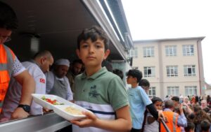 Sivas’ta Şehit Erdal Çetin İlkokul ve Ortaokulu, 40 yıldır çatılarında konaklayan leylek ailesi için pilav günü düzenledi.