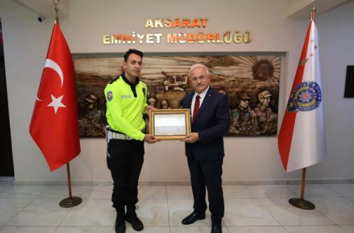 Olayda soğukkanlı davranan polis ekipleri, Aksaray Valisi Mehmet Ali Kumbuzoğlu tarafından başarı belgesiyle ödüllendirildi.