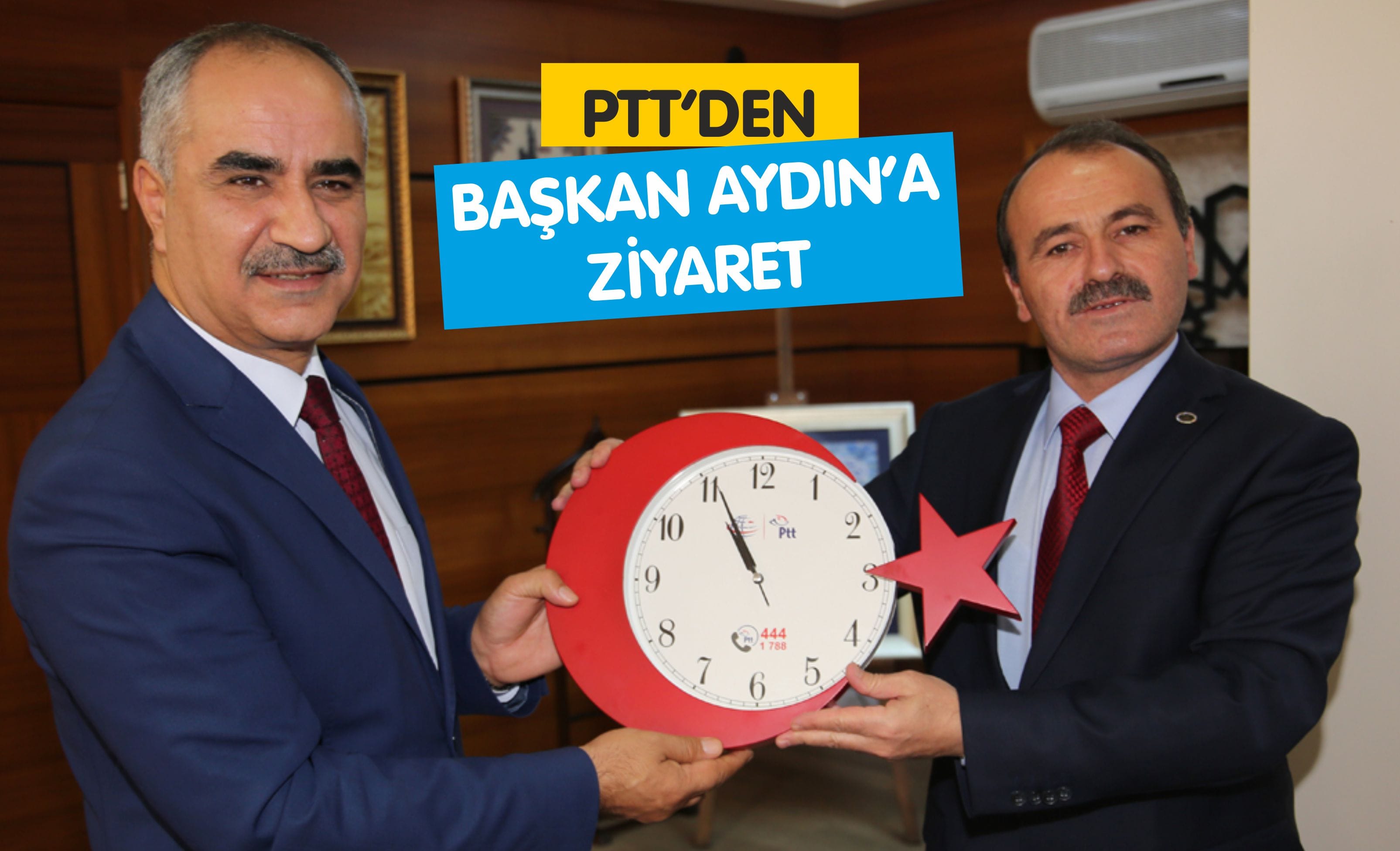 Ziyaretin anısına PTT Başmüdürü Hükümdar Kavak Başkan Aydın’a çiçek ve ay yıldız temalı duvar saati takdim etti.