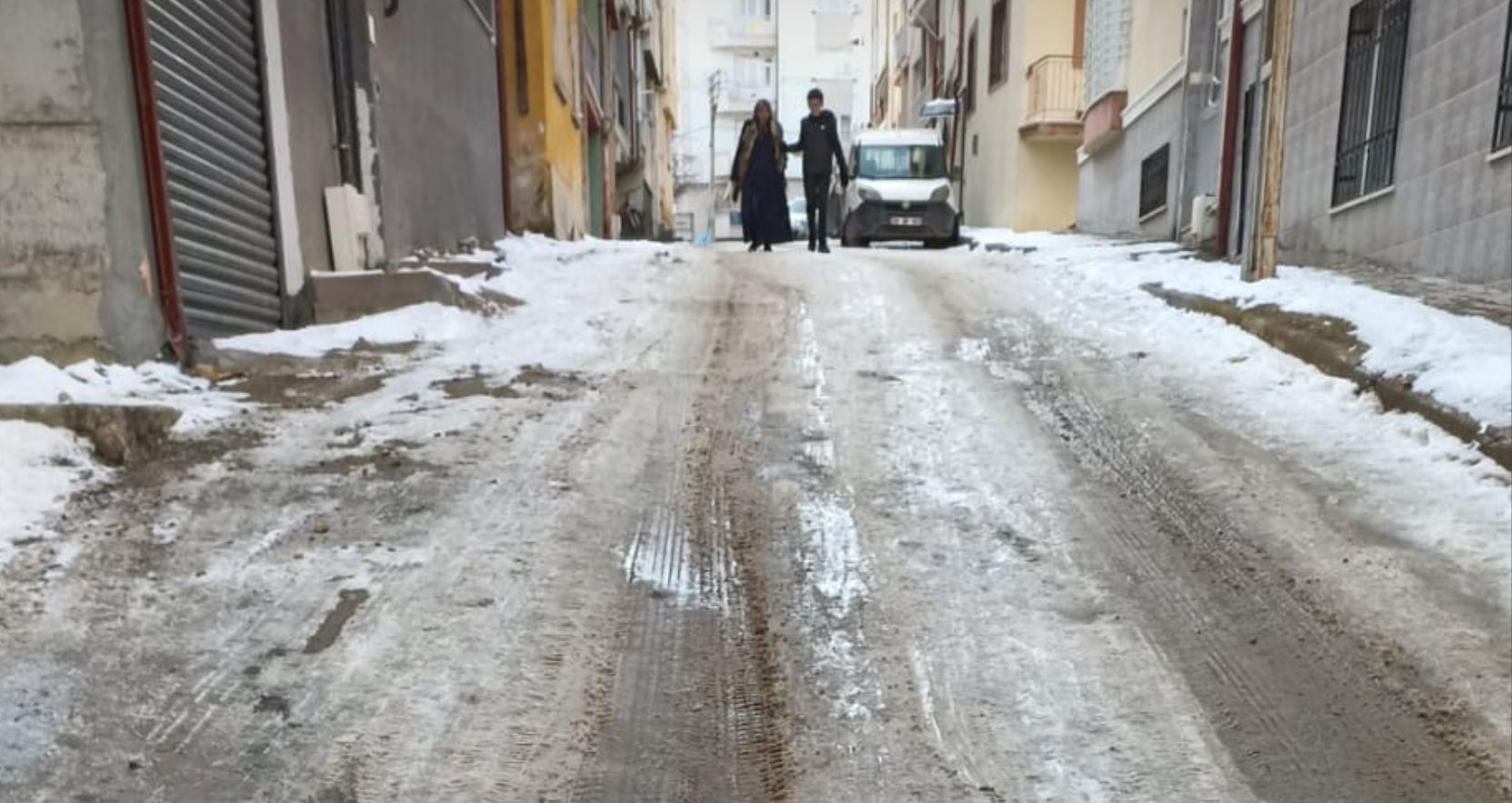 "Çayyurt Mahallesi 2. sokakta yürümeye çalışıyoruz, yürüyemiyoruz. Ne tuzlama yapıldı ne de kar temizliği. Okul servisi bile sokağa girmiyor."