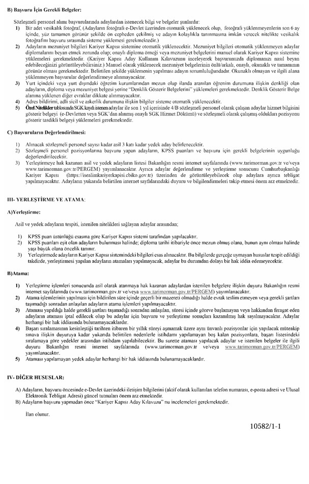 Tarım ve Orman Bakanlığı, ilanla ilgili detaylı bilgiye ulaşmak isteyen adayların “Kariyer Kapısı Aday Kılavuzu”nu dikkatle incelemesi gerektiğini hatırlattı.