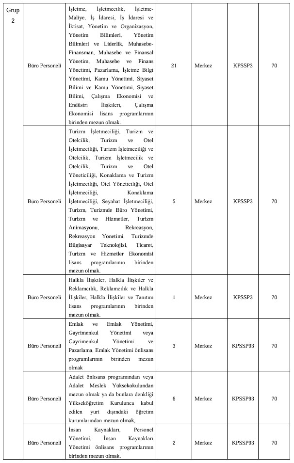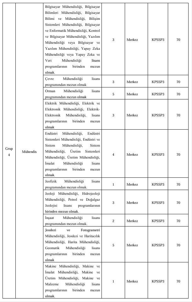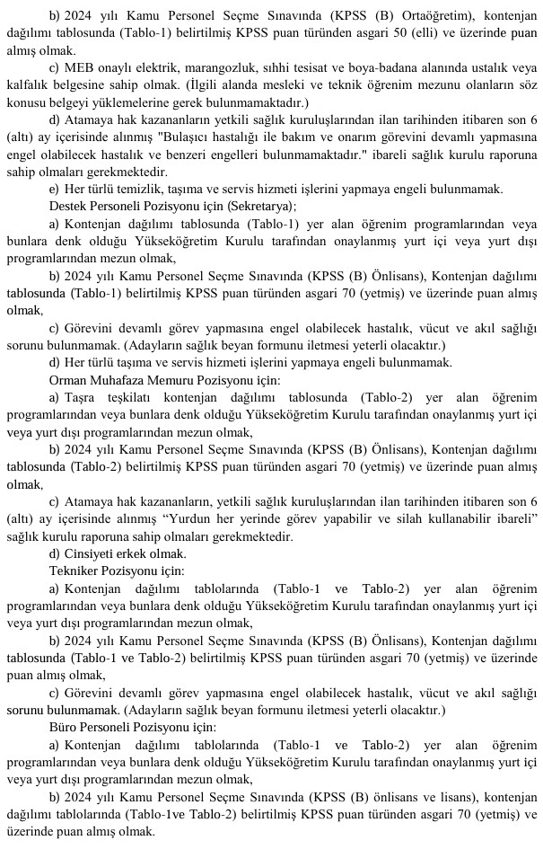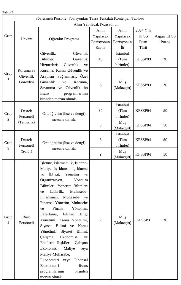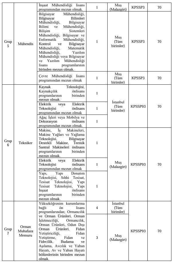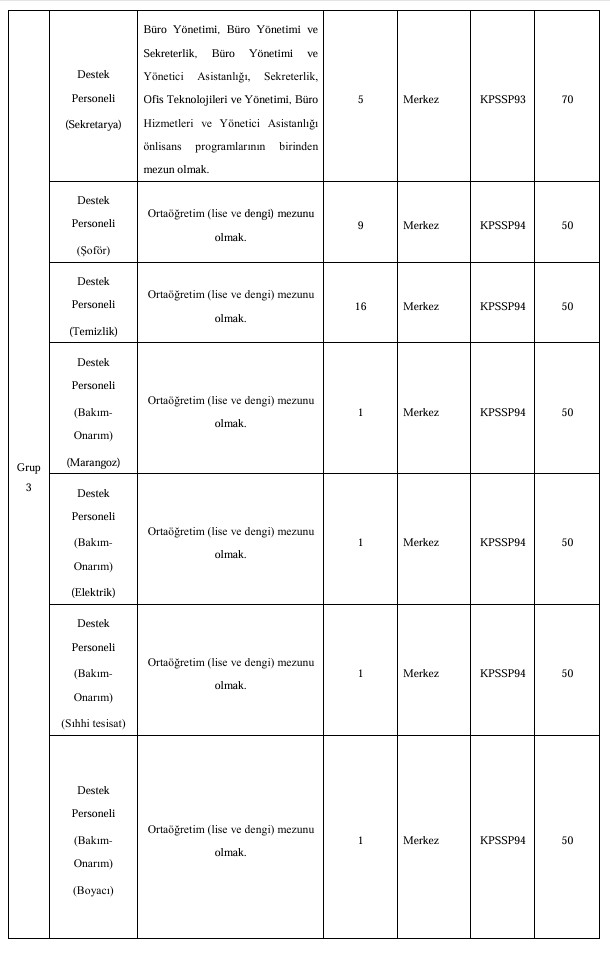 Alımlar, 657 sayılı Devlet Memurları Kanunu’nun 4/B maddesi kapsamında gerçekleştirilecek.