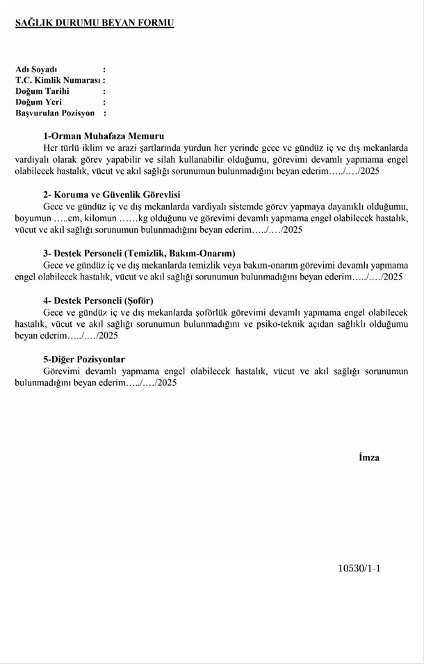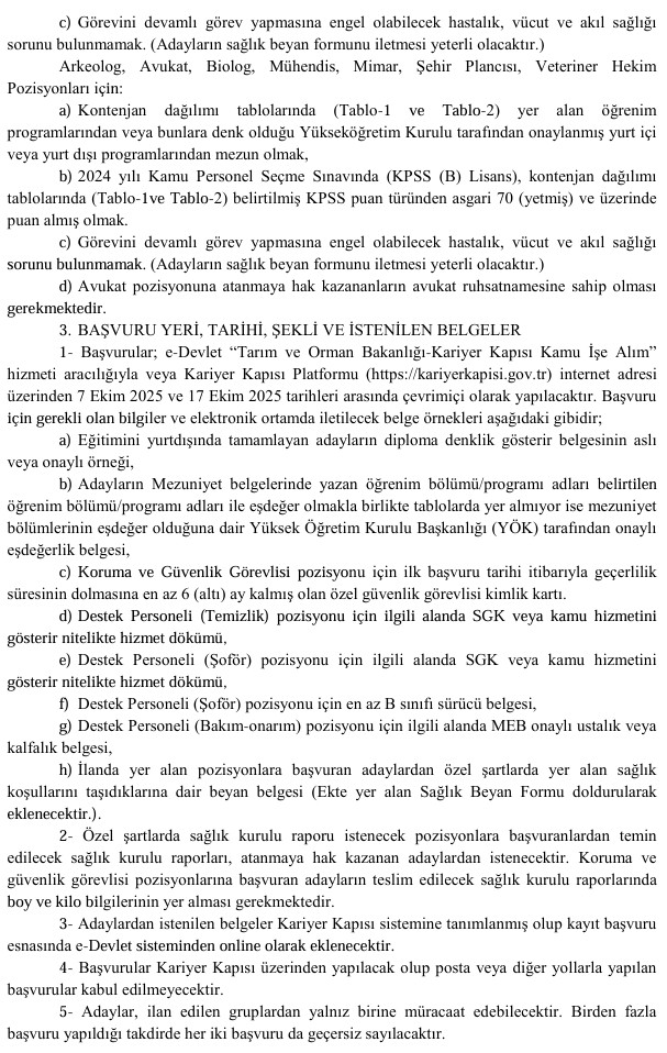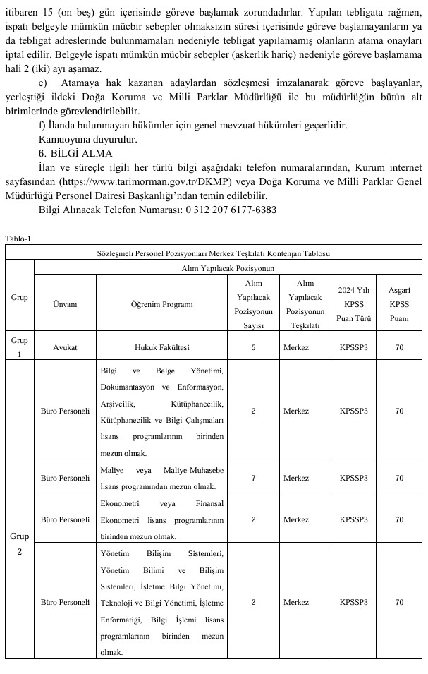 Yayımlanan ilana göre, merkez teşkilatında 51 büro personeli, 34 destek personeli, 30 mühendis, 5 avukat, 6 veteriner hekim, 2 biyolog, 4 şehir plancısı, 7 tekniker, 3 mimar, 1 arkeolog görev yapacak. Taşra teşkilatında ise 46 koruma ve güvenlik görevlisi, 31 destek personeli, 7 orman muhafaza memuru, 3 mühendis, 6 tekniker ve 2 büro personeli olmak üzere toplam 240 personel istihdam edilecek.