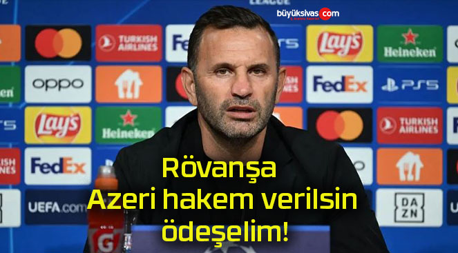 Galatasaray Teknik Direktörü Okan Buruk, Young Boys maçı sonrasında "Kardeş ülkeye Alman hakem atanmış. İnşallah rövanş maçına Azeri hakem atarlar. Eşitlemiş oluruz" ifadelerini kullandı.