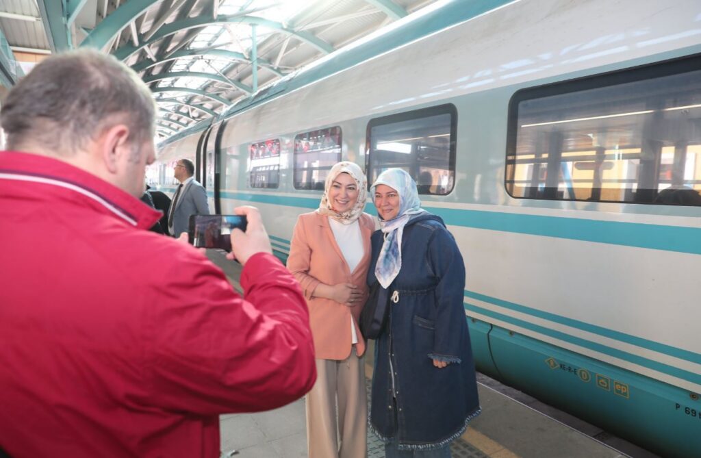 Sabah saatlerinde 26 Nisan'da açılan Ankara-Sivas hızlı tren hattında yolculuk yapan vatandaşları ziyaret ederek yolcu etti.