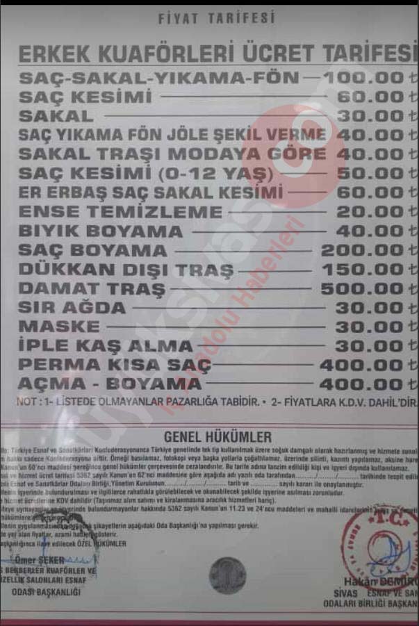 Sivas'ta saç sakal kesme 100 lira oldu! Bu fiyatlar adamı berber eder