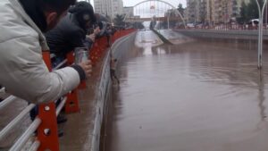 Şanlıurfa'da aracıyla su altında kalan bir kişi kendi çabasıyla yüzerek kurtuldu.