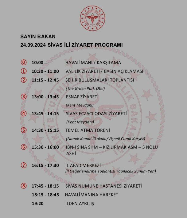 Sağlık Bakanı Sivas'a Geliyor! İşte Programı..