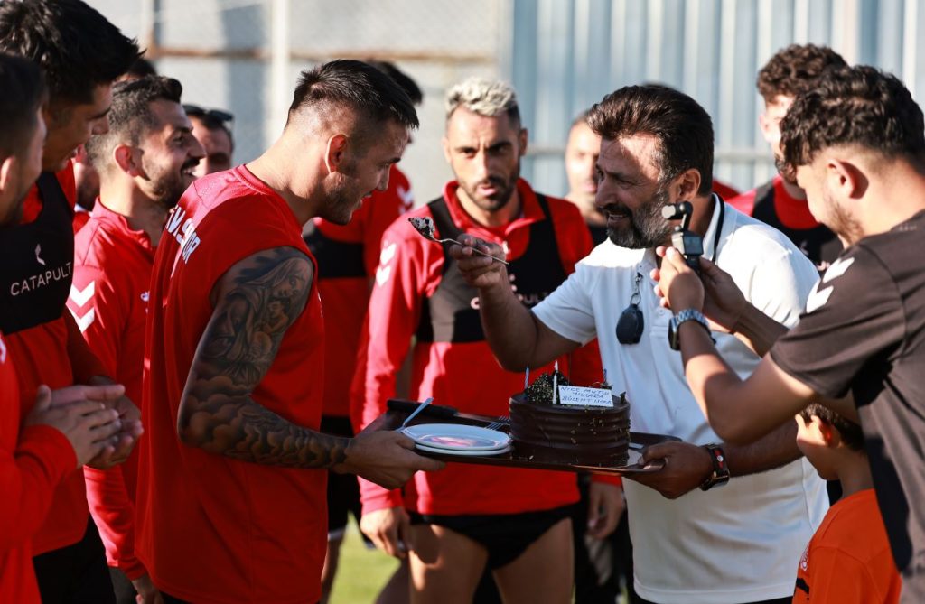 Uygun, kendisi için hazırlanan doğum günü pastasını üfledi ve sporcuların tebriğini kabul etti.