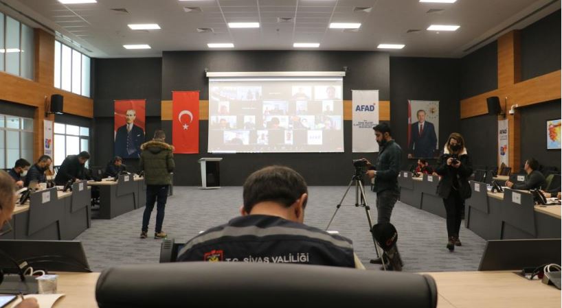 Vali Ayhan burada ilçe kaymakamları ile online olarak iletişime geçip durum değerlendirmesi aldı.
