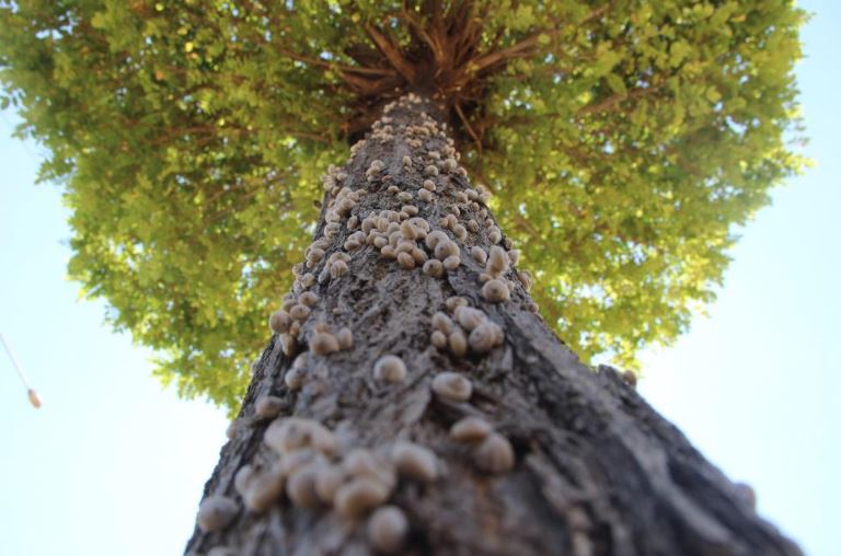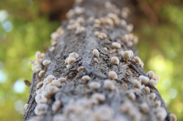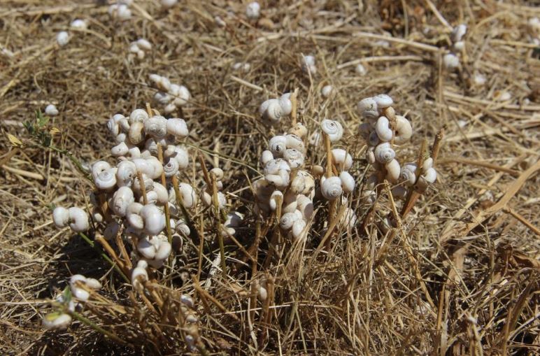 Adeta alanı istila eden salyangozlar, ot, ağaç ve direkleri kapladı.