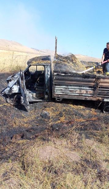 Sivas'ta saman yüklü kamyonette yangın çıktı!