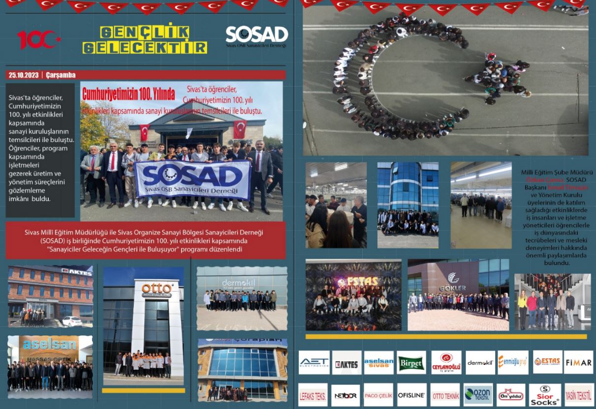 Sivas Organize Sanayi Bölgesi Sanayiciler Derneği (SOSAD), Cumhuriyetimizin 100. Yılında, Sivas Milli Eğitim Müdürlüğü ile beraber “Sanayiciler Geleceğin Gençleriyle Buluşuyor “ adı altında program düzenledi.