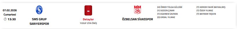 Sarıyerspor- Sivasspor Maçının Hakemi Belli Oldu.. Trendyol 1. Lig’in 24. haftasında Özbelsan Sivasspor, 7 Şubat Cumartesi günü deplasmanda Sarıyerspor ile karşı karşıya gelecek.