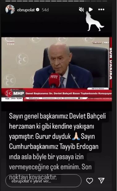 Yasaya ilk günden beri tepki gösteren şarkıcı Ebru Polat da Bahçeli'yi destekleyerek şunları yazdı: