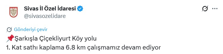 1. Kat sathı kaplama 6.8 km çalışmamız devam ediyor pic.twitter.com/wMhB14FSsm— Sivas İl Özel İdaresi (@sivasozelidare) October 5, 2025