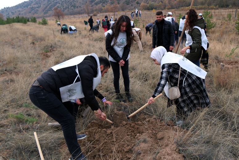 Sivas'ın Şarkışla ilçesinde 11 Kasım Milli Ağaçlandırma Günü etkinliği kapsamında 2 bin fidan dikildi.