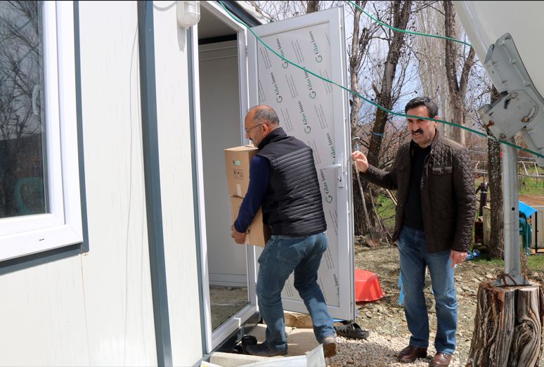 Belediye Başkanı Ahmet Turgay Oğuz ve beraberindeki gönüllüler, Altıntop Mahallesi'nde çadır, konteyner ve evleri ziyaret ederek afetzede ailelere ikişer koli yardım malzemesi teslim etti.