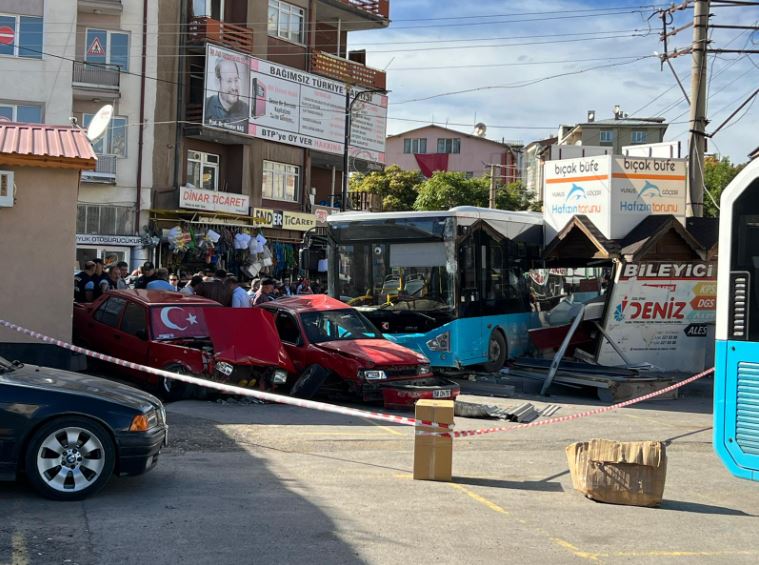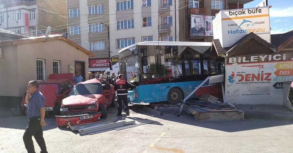 Sivas’ta kontrolden çıkan halk otobüsü önce bir büfeye girdi, ardından önüne kattığı 4 otomobili sürükledi.