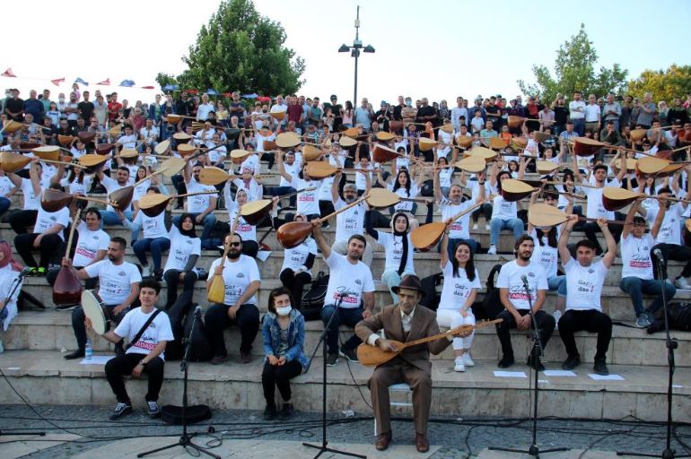 ‘Gardaşlık Festivali’ kapsamında gerçekleştirilen ‘Sazını Al da Gel’ programına 108 bağlama ustası katıldı.