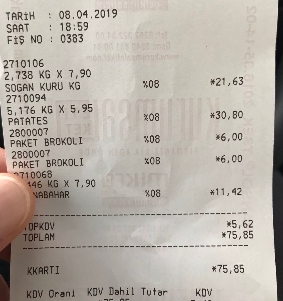 WhatsApp hattımıza gönderilen bir fişte soğan, patates gibi sebzelere 75 lira ödenmesi vatandaşlarında tepkisini çekiyor.
