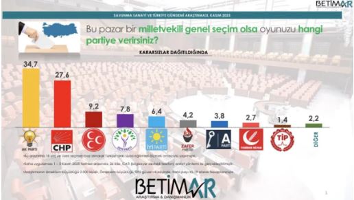 Terör örgütü PKK’nın silah bırakmasıyla Türkiye’de “Terörsüz Türkiye” süreci başlarken, kamuoyunun siyasi eğilimlerini ölçmek amacıyla Betimar Araştırma tarafından yeni bir seçim anketi yapıldı.