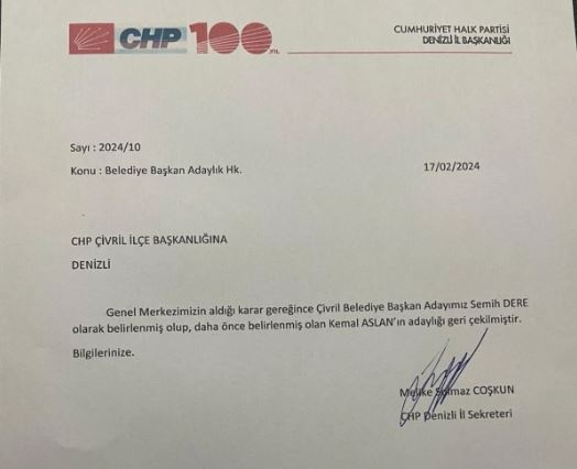 CHP'de Çivril Belediye Başkan adayı olarak açıklanan isim, 37 gün sonra adaylıktan geri çekildi. Konuya ilişkin parti cephesinden herhangi bir açıklama yapılmadı.