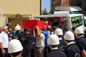 Şehidin Türk bayrağına sarılı tabutu omuzlara alınarak Sivas Belediyesine ait cenaze aracına konuldu.