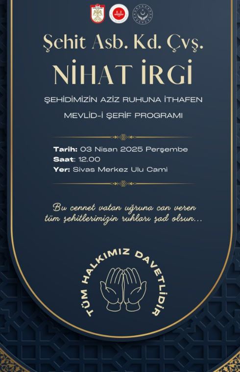 Düzenlenecek Mevlid-i Şerif programında Kur’an-ı Kerim tilaveti yapılacak, dualar edilecek ve şehidimizin aziz hatırası yad edilecek.